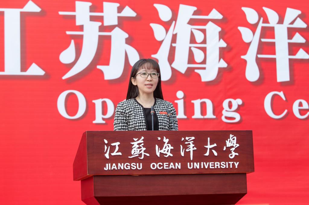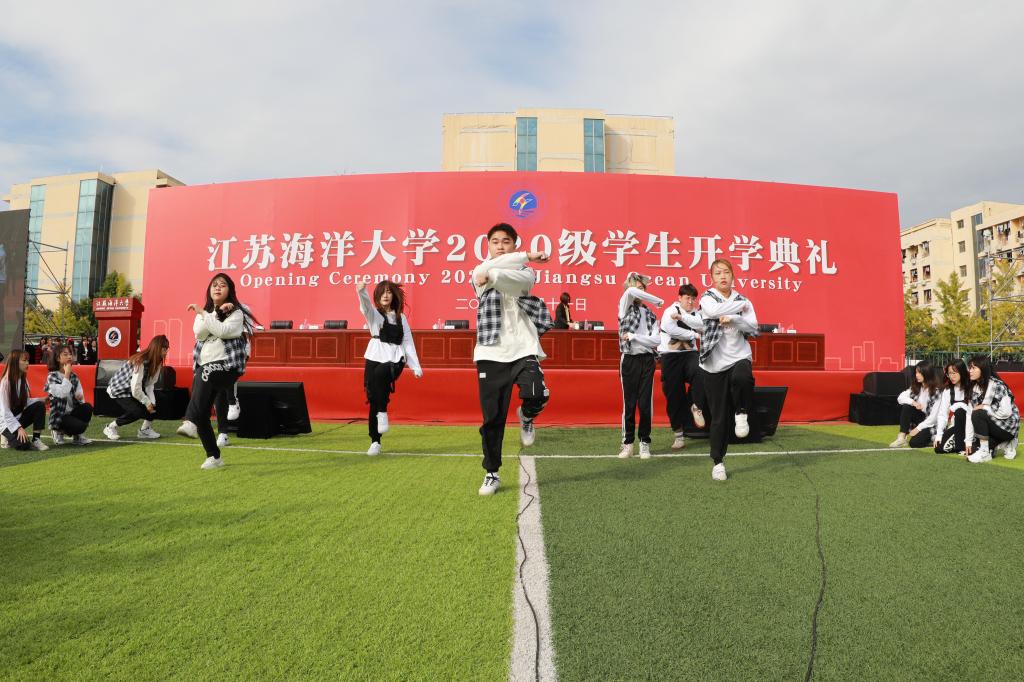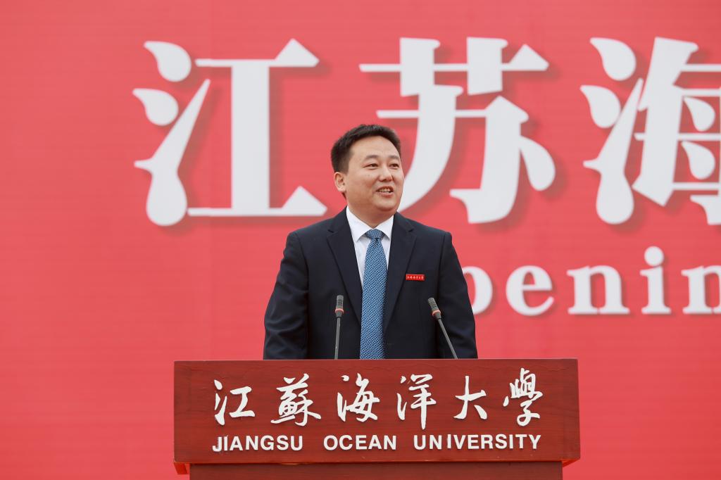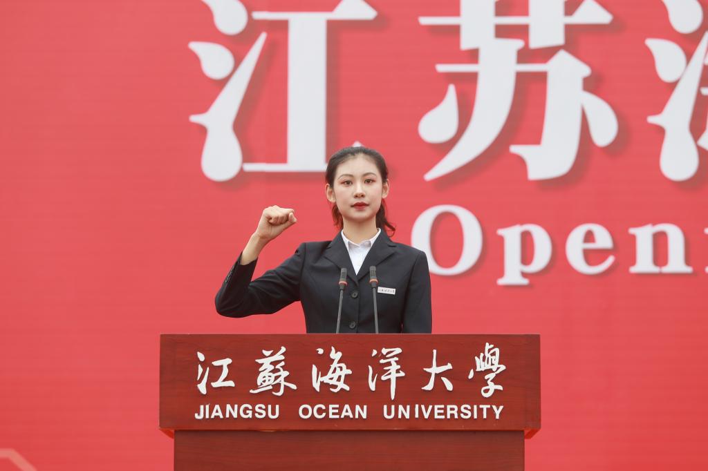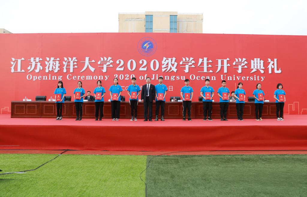 开学典礼以全场师生共同齐唱江苏海洋大学校歌《蔚蓝的信仰》结尾。