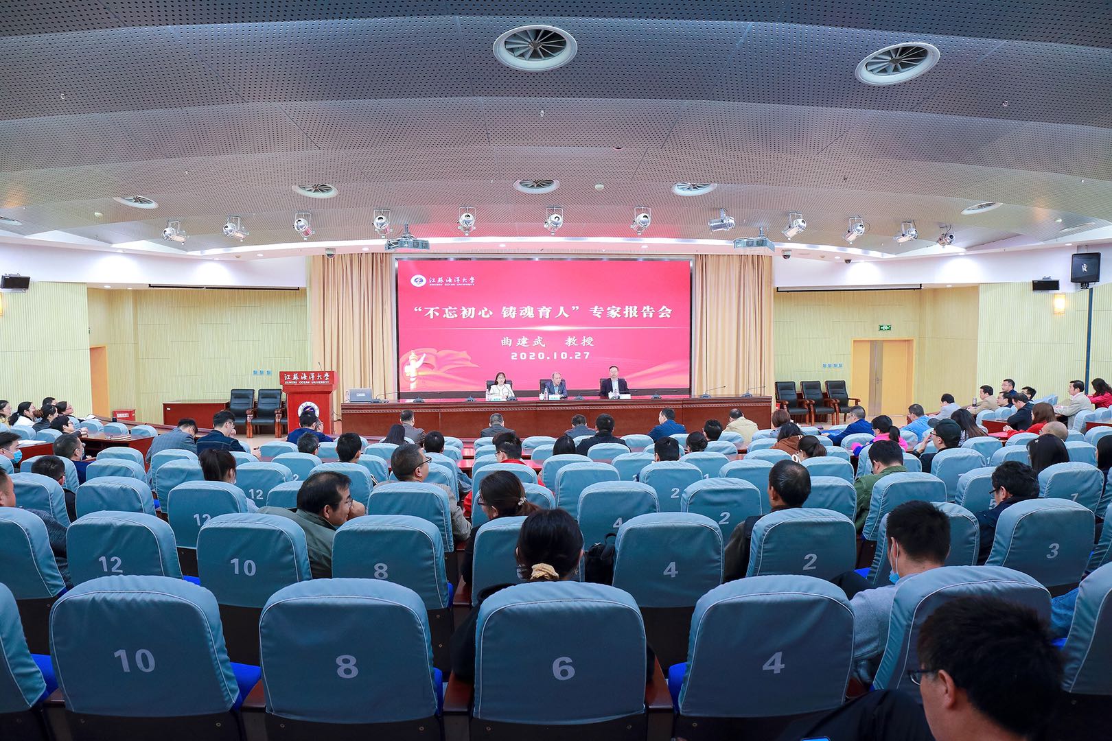 10月27日下午,“时代楷模”“最美奋斗者”、大连海事大学曲建武教授专题报告会暨客座教授聘任仪式在我校会议中心黄海厅举行。校长宁晓明出席报告会,副校长金芙蓉主持报告会。全校辅导员,新生班主任,马克思主义学院全体教师,党委学工部、党委研工部、团委全体工作人员及教职工代表聆听了报告。