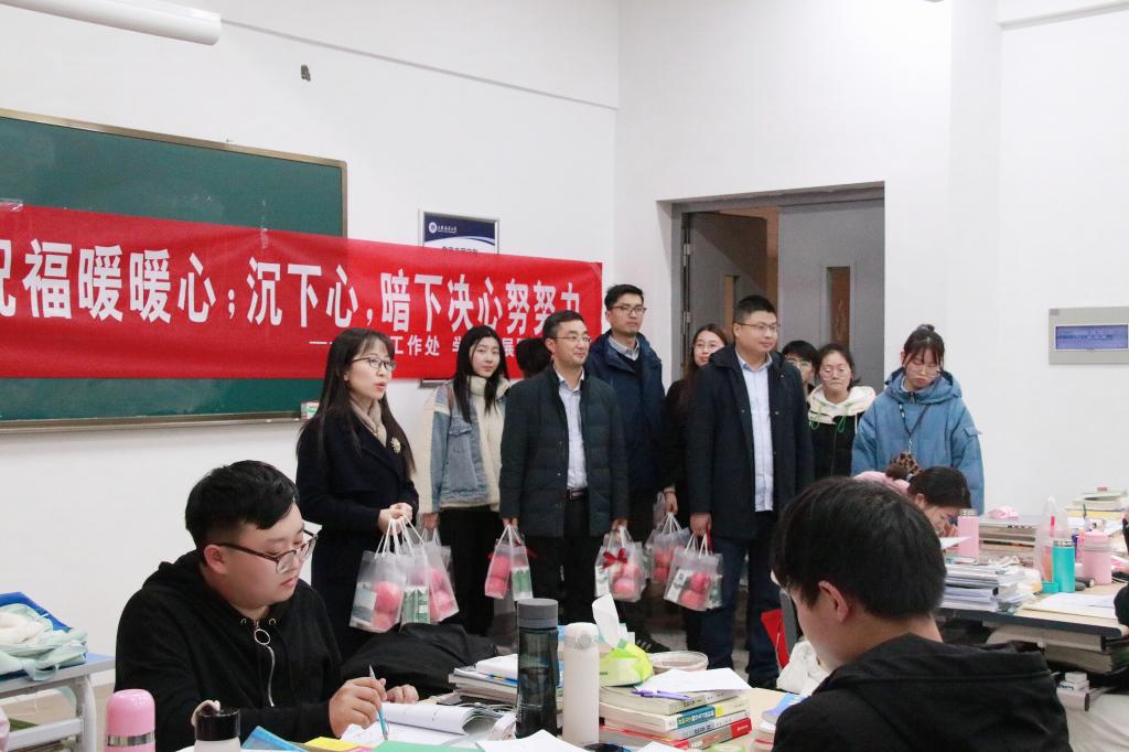 考试前,校领导及各学院的老师们带着“考研暖心礼包”来到图书馆、考研教室、学生宿舍,看望慰问考研学生,为正在紧张备考的学子们送去暖心祝福与慰问。学弟学妹们亲自手绘考研祝福明信片,带着墨香的亲笔字,富有寓意的手绘图,这一张张满满祝福“装入”考研暖心礼包中,也随着考研慰问,“送进”考研学子的心里。