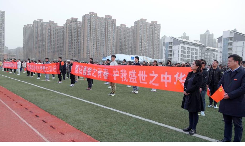 3月29日,在苍梧校区东体育场,校领导、师生代表1100余人,共同参加爱国主义教育主题升旗仪式。校党委书记王自力在升旗仪式上讲话,副校长李梅英主持升旗仪式。