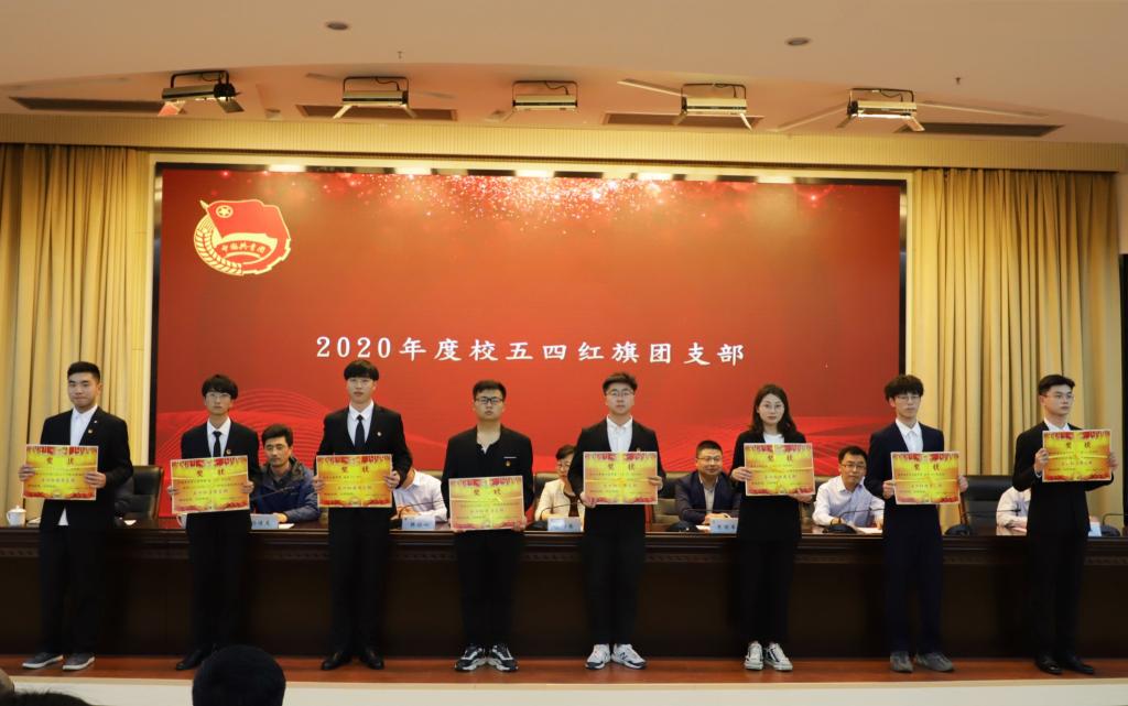 表彰大会在激昂的国歌声中拉开帷幕。党委组织部副部长韩振响宣读了省、市级“两红两优”表彰单位和个人。我校2个团支部获得省级、市级五四红旗团支部;2个学院团委被评为市五四红旗团委;6名师生荣获省级、市级先进个人。