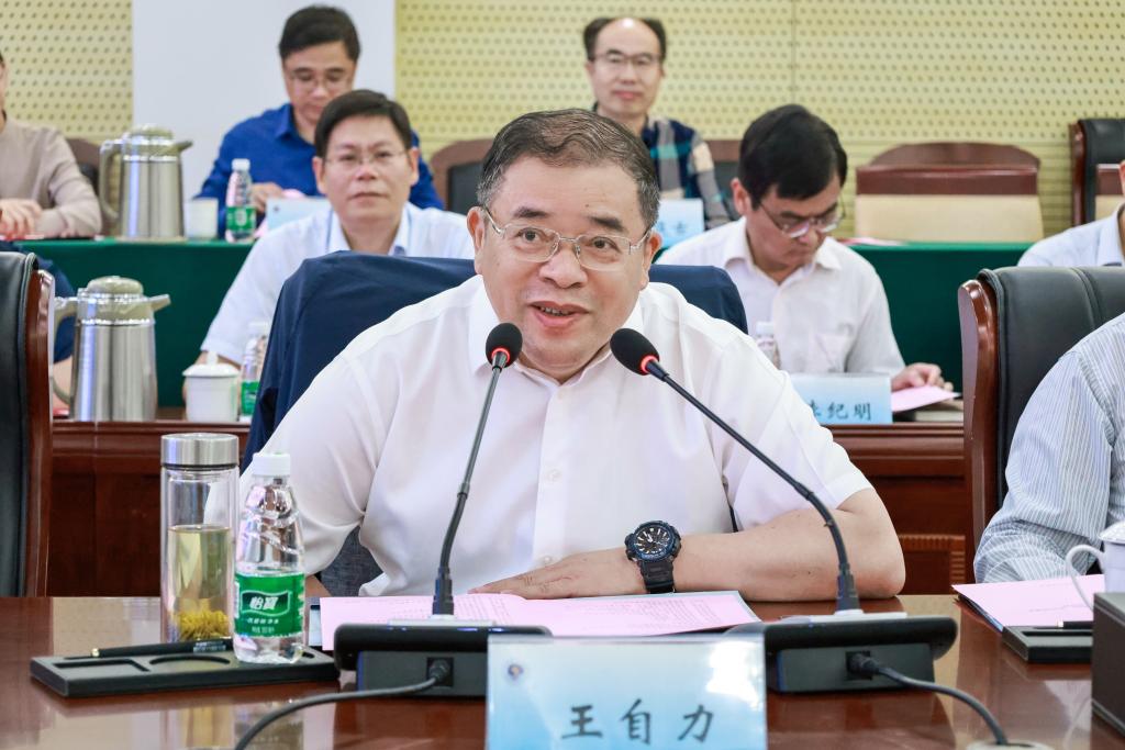 王自力对赵炳起、孙爱武一行的到来表示热烈欢迎,王自力详细阐述了学校“十四五”期间事业发展具体的布局谋划和事业发展的美好愿景,以及学校学科与办学特色、博士授予权单位建设等方面工作。