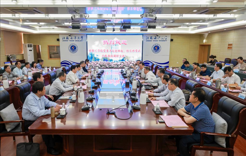 5月25日下午,淮阴工学院党委书记赵炳起、校长孙爱武率队来我校调研交流。调研座谈会在会议中心东海厅召开。淮阴工学院校领导吴建华、陆为群、朱晓文、王冬冬、魏宏庆及我校全体在连校领导出席会议。校党委书记王自力主持。