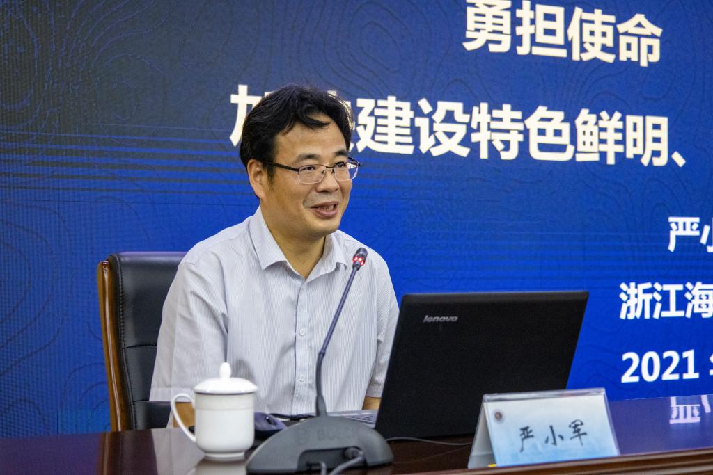 严小军教授首先向大家介绍了浙江海洋大学的总体概况、发展形势以及未来努力的方向。接着从国家战略需求、区域产业发展与学校服务面向紧密结合的视角,重点分享了学校在争取博士学位授予权单位、打造海洋科学高峰学科、构建高端海洋人才队伍、实现海洋科技创新成果转化、提升海洋科教国际影响力等方面的特色做法与取得成效。在报告的最后一部分,严教授提出,建设一支勇于担当、敢闯敢拼的干部队伍对于学校各项工作的顺利开展和整体运转有着重大影响,是实现一流海洋大学建设目标的重要保障。