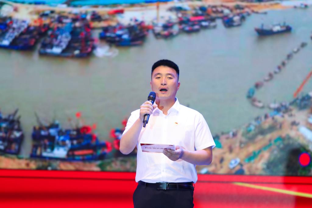 活动中,连云港市赣榆区海头镇海脐村党总支副书记李健讲述了海头镇海脐村电商乘风破浪一跃成为中国淘宝镇、省农村电子商务示范镇的故事。