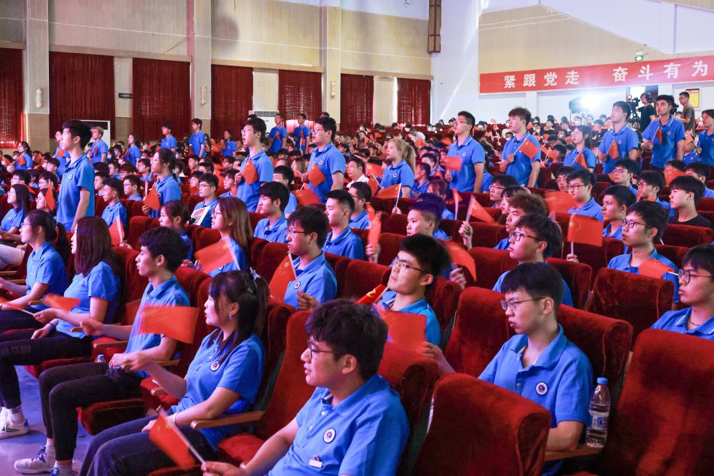 “我志愿加入中国共产党,拥护党的纲领,遵守党的章程,履行党员义务……”江苏海洋大学20名党员代表走上舞台中央,举起右拳,面对鲜红的党旗,重温入党誓词,铿锵有力地誓言在礼堂久久回响。