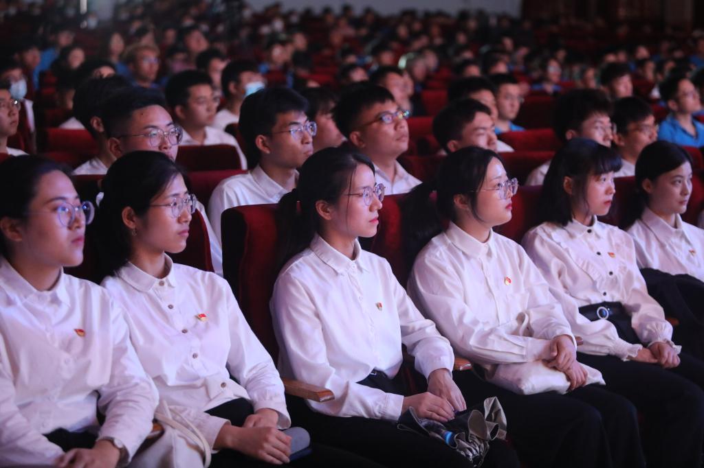 下午2时30分,上课铃声响起。《唱支山歌给党听》《没有共产党,就没有新中国》两首快闪歌曲联唱拉开了百年党史青春说江苏海洋大学站活动的序幕。闪亮的党徽、挥动的国旗、年轻的脸庞、动听的歌曲,瞬间点燃了整个会场的气氛。