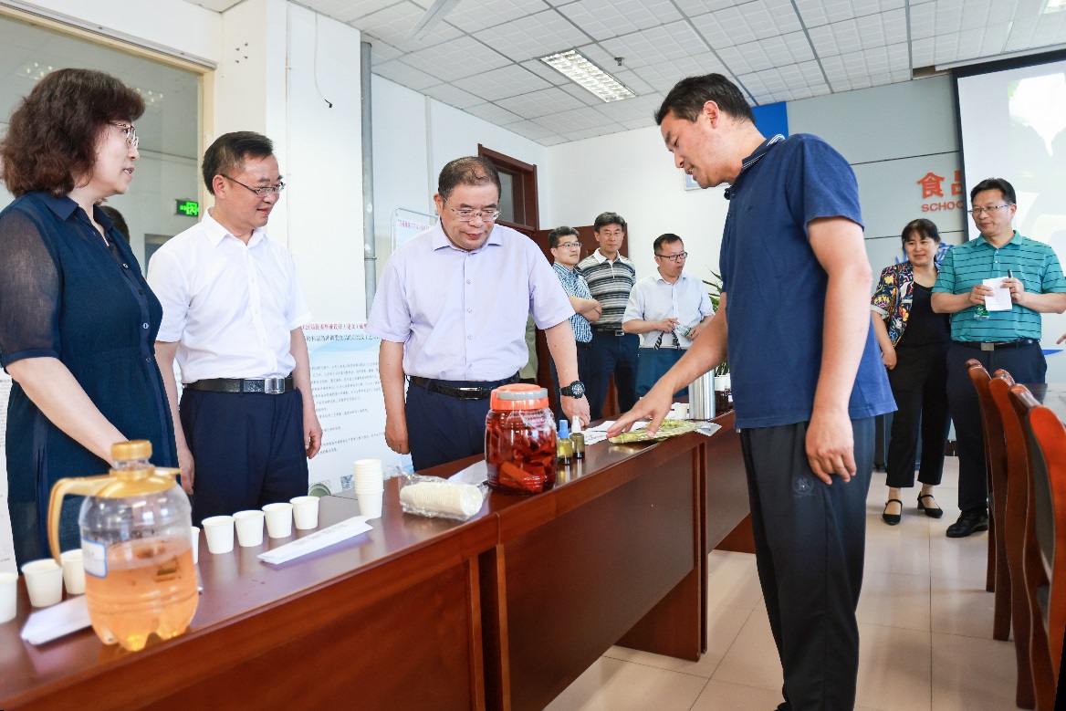 食品科学与工程学院不仅展出图文并茂的优秀论文展板,而且展示了丰富多彩的实物展品,既有独特海洋风味的鱼肉火腿肠、海藻酱、海藻啤酒等,又有特色鲜明的豆丹及其制品,既有传统的泡菜、黄酒等,又有采用现代工艺加工制成的泥鳅胶囊、南极磷虾油等产品。王自力书记对学院立足水产食品开发、彰显海洋特色给予高度评价,对该院教师创新豆丹养殖方式并取得较大的经济和社会效益表示出极大兴趣,并指示学院要进一步加快发展、走好特色发展之路。