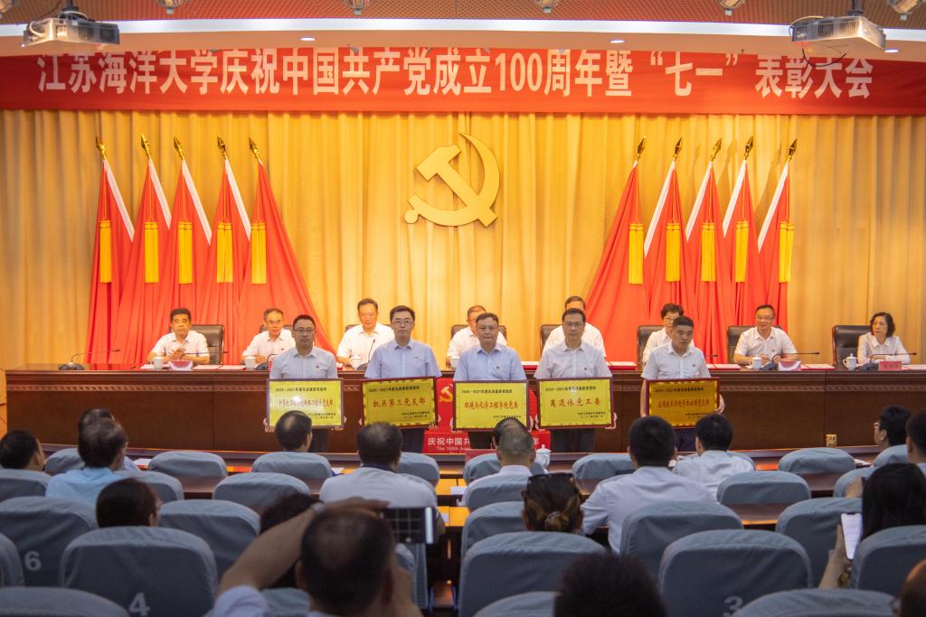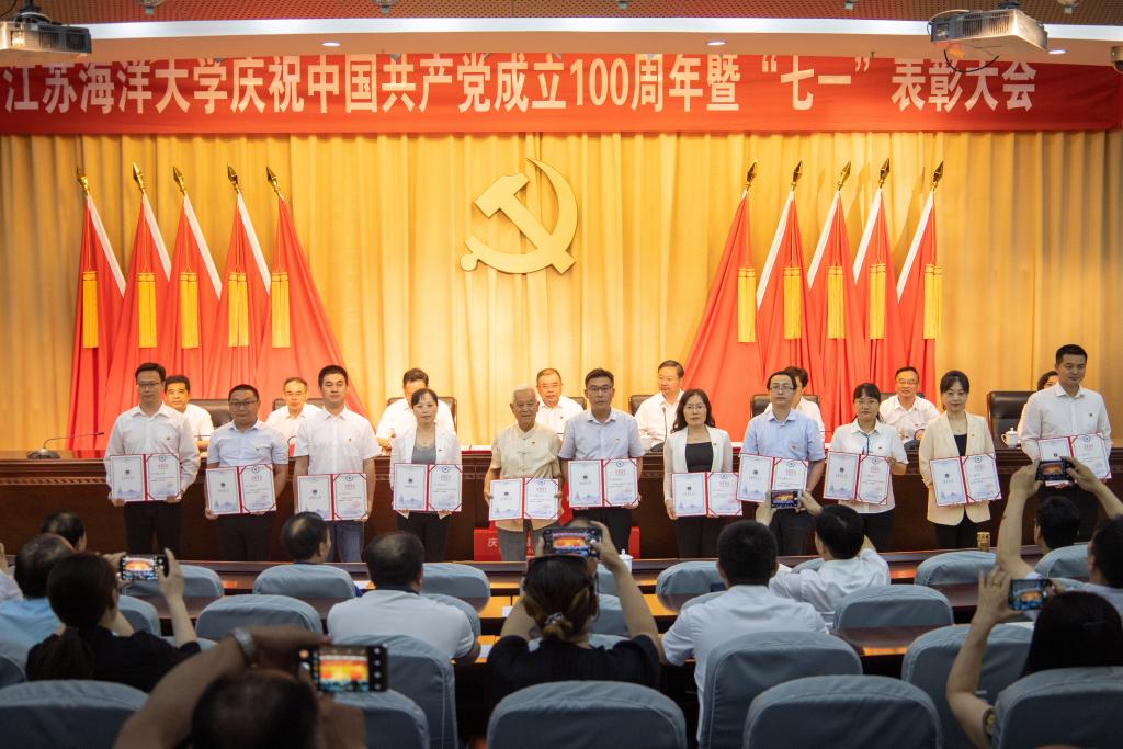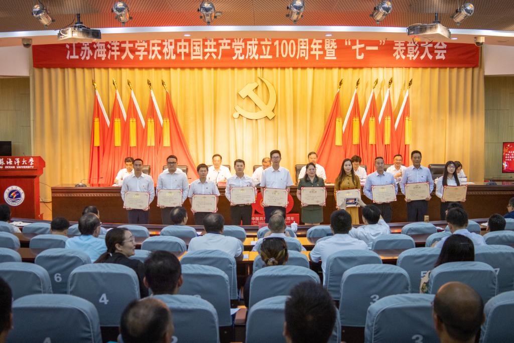机械工程学院党委被授予“全省高校先进基层党组织”称号,环境与化学工程学院党委等5个基层党组织被授予“校先进基层党组织”称号;施珺、徐军田分别被授予“全省高校优秀共产党员”称号和“连云港市优秀共产党员”称号,马静等11位同志被授予“校优秀共产党员”称号;徐军田、苏成兄等2位同志被授予“校优秀共产党员标兵”称号;司成伟同志被授予“连云港市优秀党务工作者”称号,王秋玉等5位同志被授予“校优秀党务工作者”称号;机关第二党支部等10个单位获“最佳党日活动”奖,商学院会计与财务教工党支部等6个党支部被评为“特色党支部”。与会领导为获得表彰的先进基层党组织和个人发放了奖牌和证书。