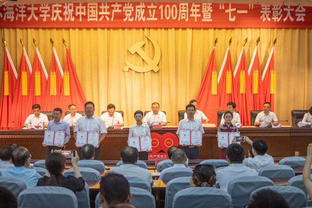 7月1日下午,我校庆祝中国共产党成立100周年暨“七一”表彰大会在会议中心黄海厅隆重举行,回首中国共产党的百年光辉历程,表彰学校涌现出来的一批先进典型代表。全体在连校领导出席会议。校两委委员、中层干部、党支部书记代表、新党员代表以及受表彰的集体和个人参加了大会。校党委副书记史顺良主持会议。