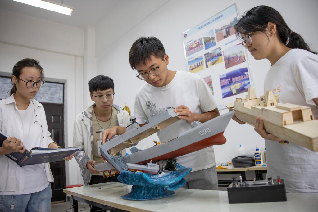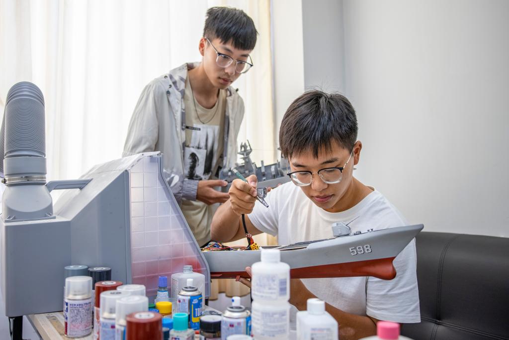 我校参赛队员,怀着积极的态度和必胜的信心,分工协作,合理规划,全身心地投入了日照舰的制作过程中。此前,我校队员先参加了金陵区域赛D类(名船名舰仿真制作)比赛,与省内其他17支高校队伍进行角逐,我校“江海大日照舰”名列第二名,获省级一等奖。