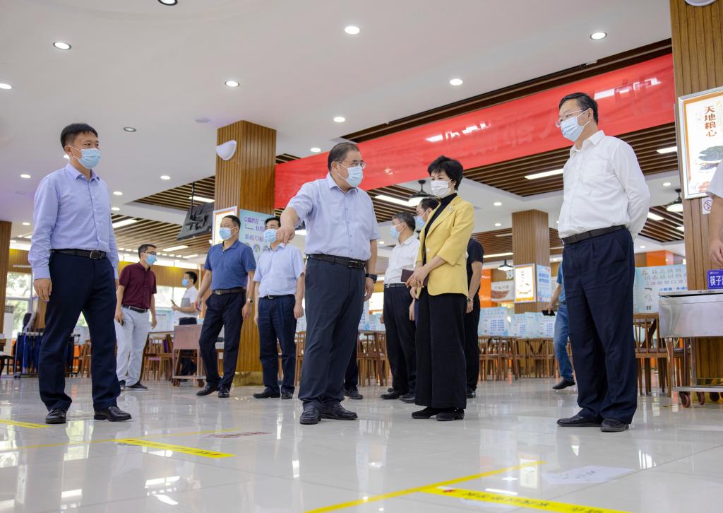 顾月华对我校疫情防控和开学准备工作给予充分肯定。她要求学校要认真贯彻落实省委教育工委、教育厅关于疫情防控工作的决策部署,进一步提高政治站位,强化责任担当,细化防控措施,提升应急处置能力,把师生的生命安全和身体健康放在首位,确保开学各项工作安全有序。
