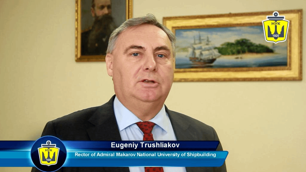 马卡洛夫国立造船大学校长Eugeniy Trushliakov视频致辞。Eugeniy Trushliakov校长对马卡洛夫海洋工程学院揭牌表示热烈祝贺。Eugeniy Trushliakov校长表示,江苏海洋大学为中国经济社会发展培养了一大批专业人才,为海洋研究领域做出了许多贡献。两校合作举办的马卡洛夫海洋工程学院,开设船舶与海洋工程、机器人工程专业,将为更多年轻人未来的职业生涯开辟新的发展道路和新的视野。Eugeniy Trushliakov校长提出,高素质人才培养水平的不断提高和教育方法的不断改进将是两校共同繁荣发展的有力保障,也为马卡洛夫海洋工程学院的美好未来打下基础。