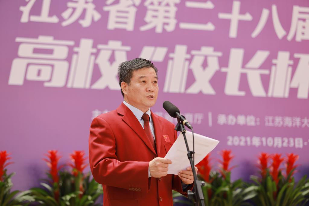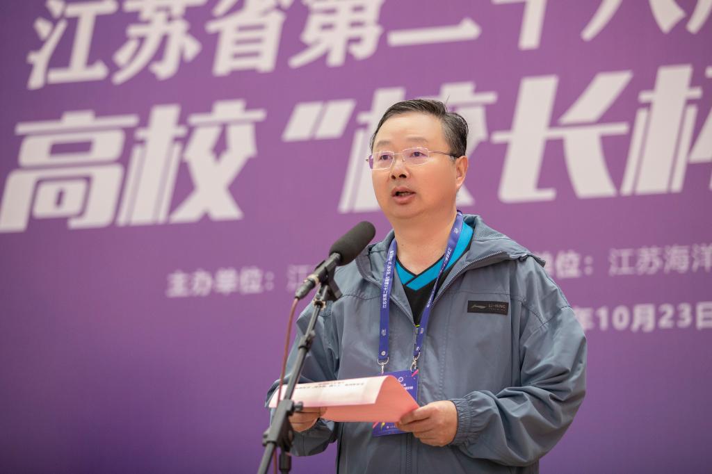 徐家保致欢迎辞,他表示,本次比赛将进一步加深各高校对连云港市的了解,连云港市将全力协助江苏海洋大学当好东道主,优质、高效地组织好这场赛事。