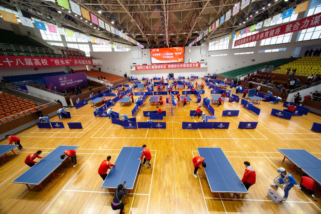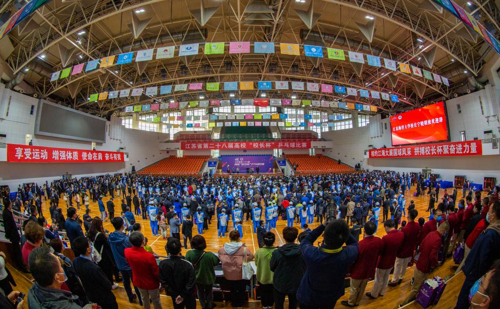 为全面推进我省学校体育工作,加强高校之间的交流,提高健康水平,2021年10月24日,由江苏省教育厅主办,江苏海洋大学承办的江苏省第二十八届高校“校长杯”乒乓球比赛圆满落幕。来自全省112所高校及省教育厅、省教育考试院、省建行的116支代表队伍参加本次比赛 ,共享国球魅力。本届“校长杯”的参赛领导、嘉宾、运动员和裁判员达1500余人,参赛高校数和赛事规模创历届江苏省高校“校长杯”乒乓球比赛新高。