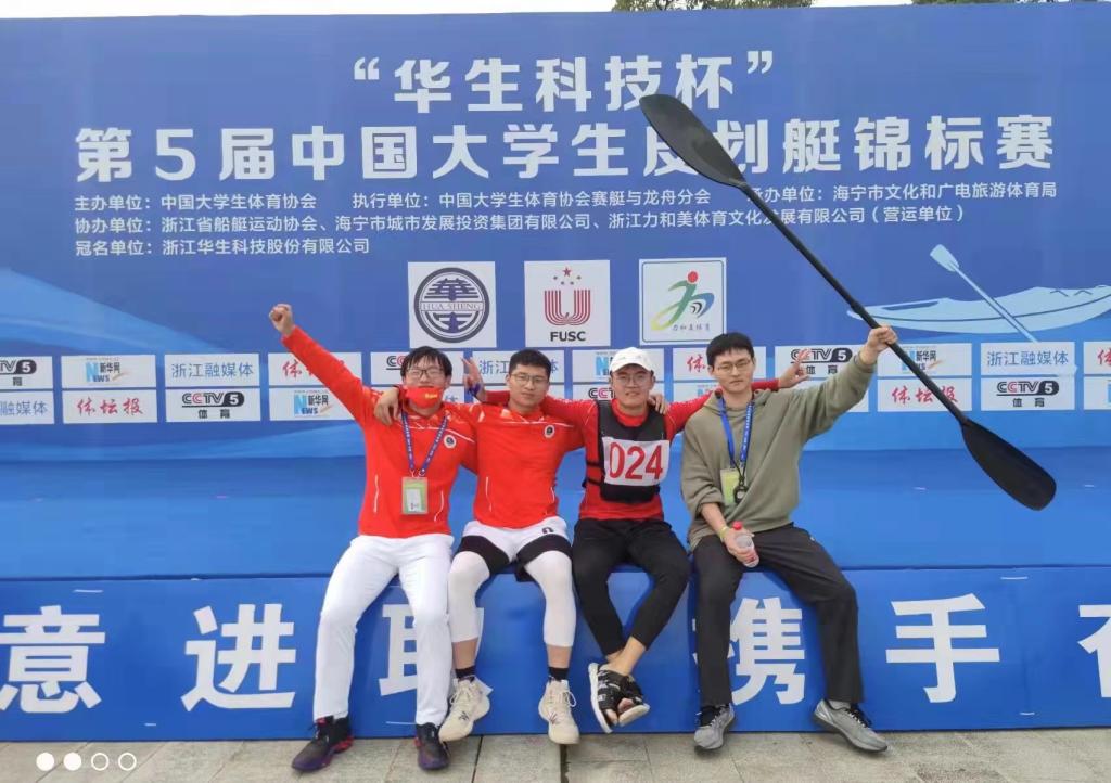 10月22-24日,第5届中国大学生皮划艇锦标赛在浙江海宁鹃湖公园开赛。共有来自北京大学、浙江大学、浙江海洋大学、江苏海洋大学等18所高校130多名运动员参赛。我校代表队获2金1银1铜的好成绩。