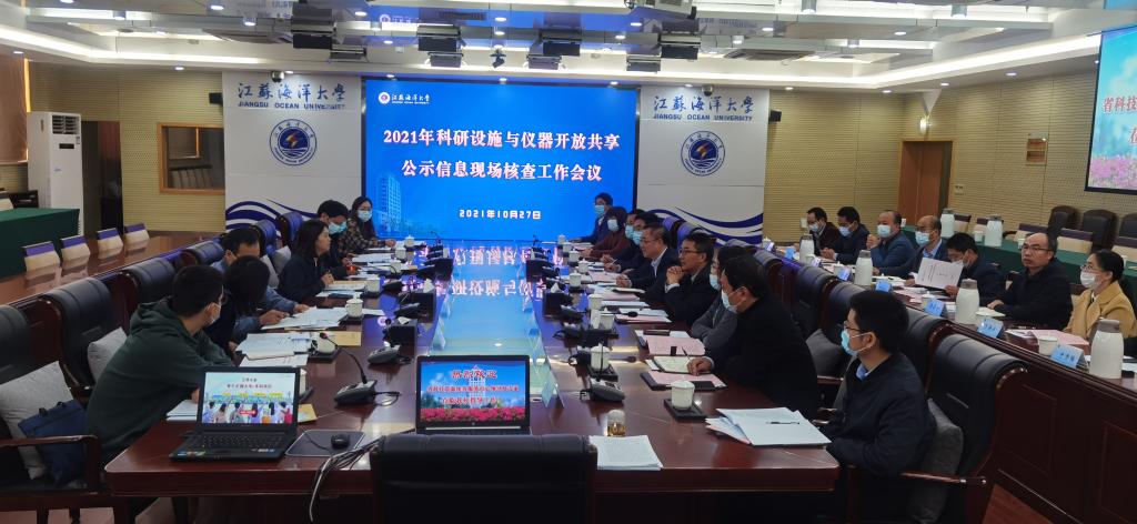 设备与实验室管理处、科学技术处、人事处、财务处、海洋资源开发研究院负责人,相关学院分管领导,连云港市科技局相关人员参加核查工作会议。