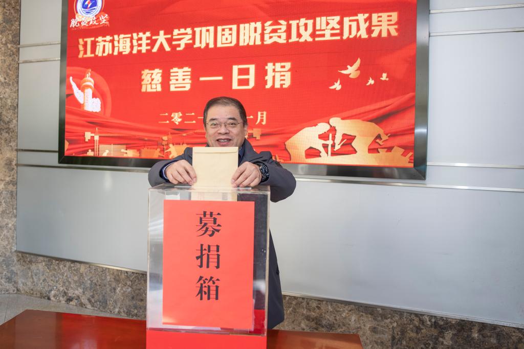慈善总会副会长朱文来介绍了慈善总会的基本情况,并向江苏海洋大学表示感谢,“江苏海洋大学作为连云港的高校,积极响应号召,捐款献爱心,助力扶贫攻坚,展现了高校的责任和担当!”