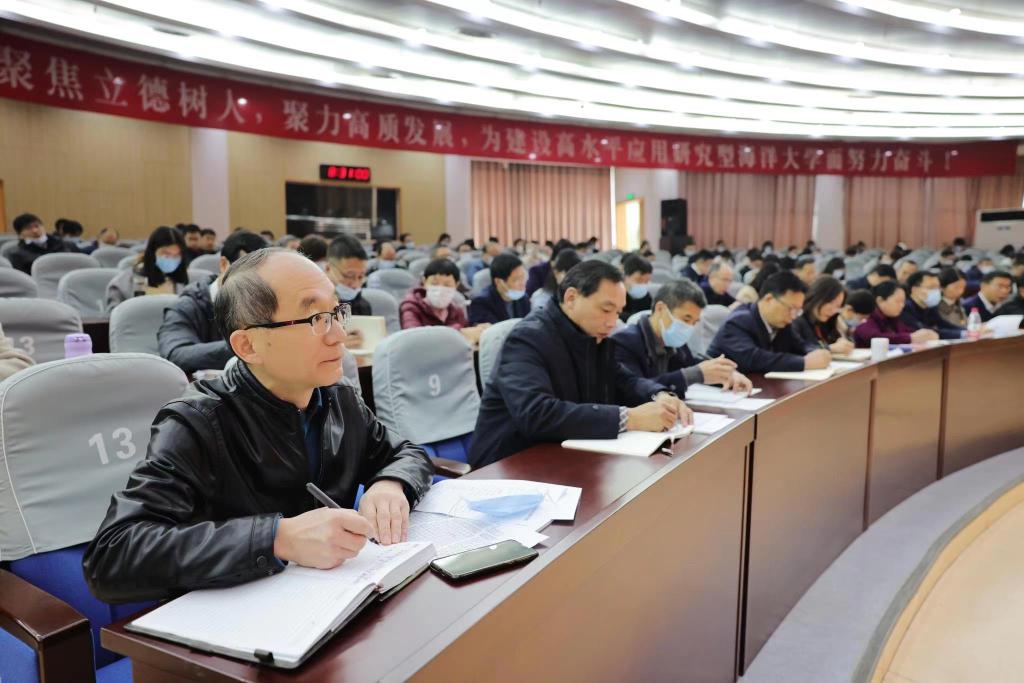 为深入学习贯彻习近平总书记“七一”重要讲话精神和党的十九届六中全会精神以及第二十七次全国全省高校党的建设工作会议精神,11月18日至19日,我校在会议中心黄海厅举行全校基层党组织书记专题培训班。校党委书记王自力出席开班式并讲话。各基层党委(总支、直属支部)书记、副书记,党政办(办公室)主任和全体党支部书记200余人参加了培训。
