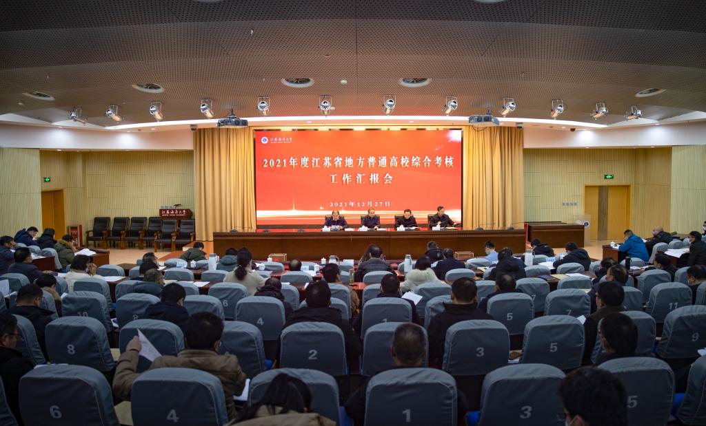 按照省考核委统一安排,12月27日,2021年度江苏省地方普通高校综合考核工作汇报会在会议中心黄海厅召开。省委第九综合考核组组长王济干,副组长崔益虎出席会议。综合考核组全体成员,全体在连校领导、两委委员、中层正职、区级以上人大代表、政协委员、民主党派负责人、教师代表参加会议。校党委书记王自力主持会议。