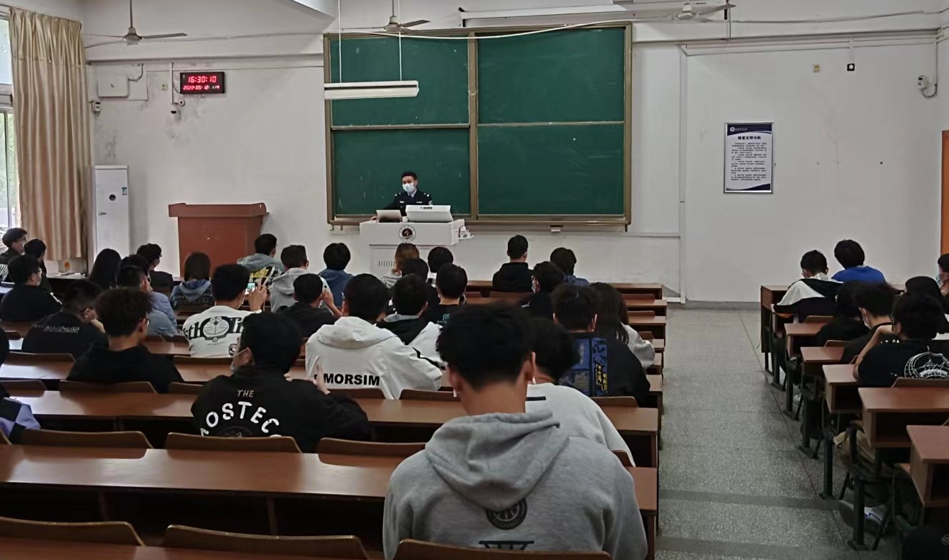 电子工程学院邀请市公安局高新分局吴永先警官来校面向全体宿舍长开展法制知识讲座,并组织 “法治为青春护航 守护我们共成长”大讨论。