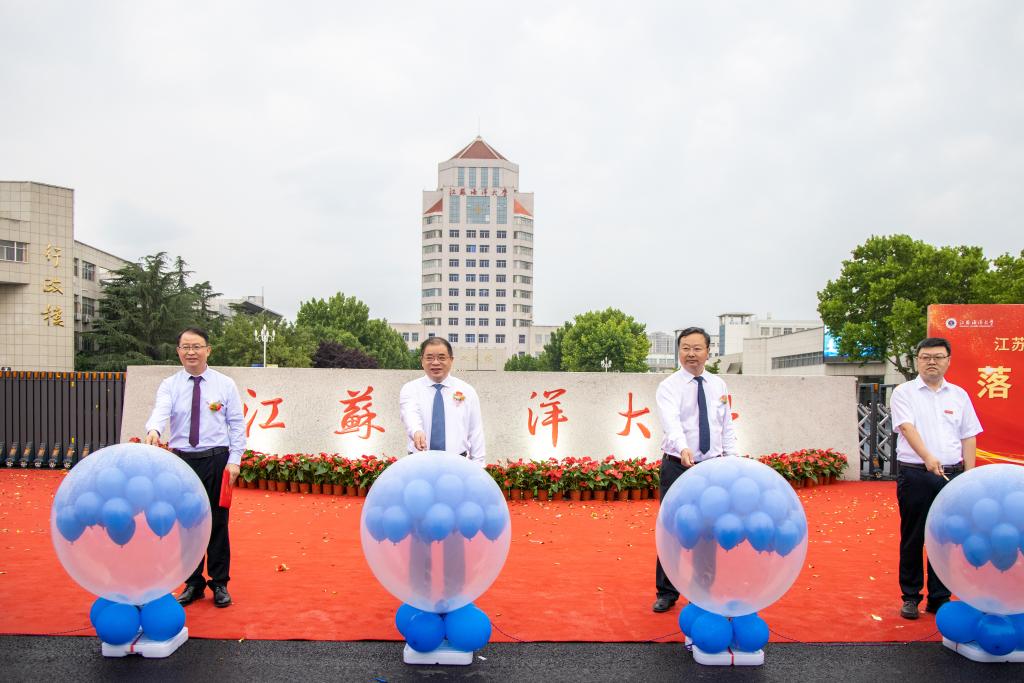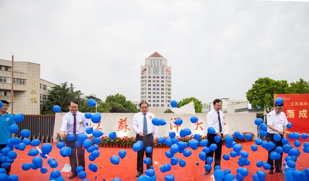 最后,王自力、宁晓明、许健、张恒、邓振国、王晓凡共同启动地爆球,新校门落成典礼圆满落幕。伴随着象征学校事业发展的海大蓝气球升空,江苏海洋大学主大门正式启用。