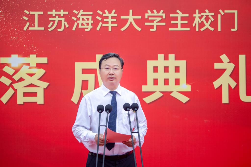 6月27日上午,我校苍梧校区一号门红毯铺地、彩旗飘扬、人潮涌动、热闹非凡,备受关注的江苏海洋大学主校门落成典礼隆重举行。校党委书记王自力、校长宁晓明、党委副书记史顺良出席典礼。捐建校友、设计施工单位代表许健、郭世平、陈双喜、史建青、冯新春、马晓刚、朱一明、王永君、李刚等作为特邀嘉宾参加典礼。落成典礼由校党委常委、副校长李梅英主持。
