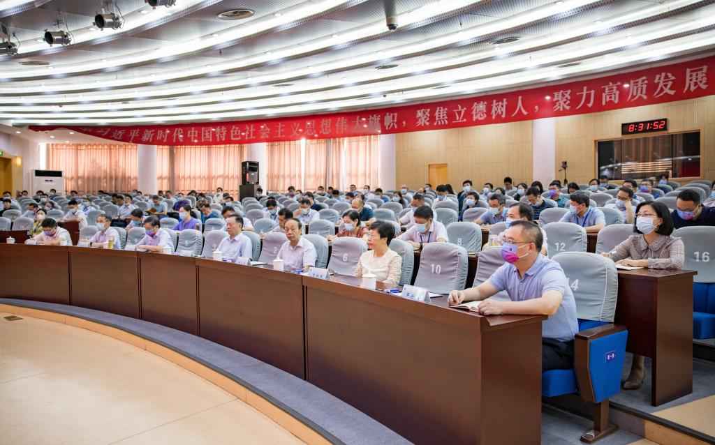 校长宁晓明以“坚定信心奋楫争先以优异成绩迎接党的二十大胜利召开”为题,从持续提升党建思政工作质量、高质量推进内涵建设、持续优化内部管理和办学条件等三个方面回顾学校暑期各项重点工作开展情况,并代表学校向坚守岗位、尽职尽责的师生员工,表示衷心的感谢。
