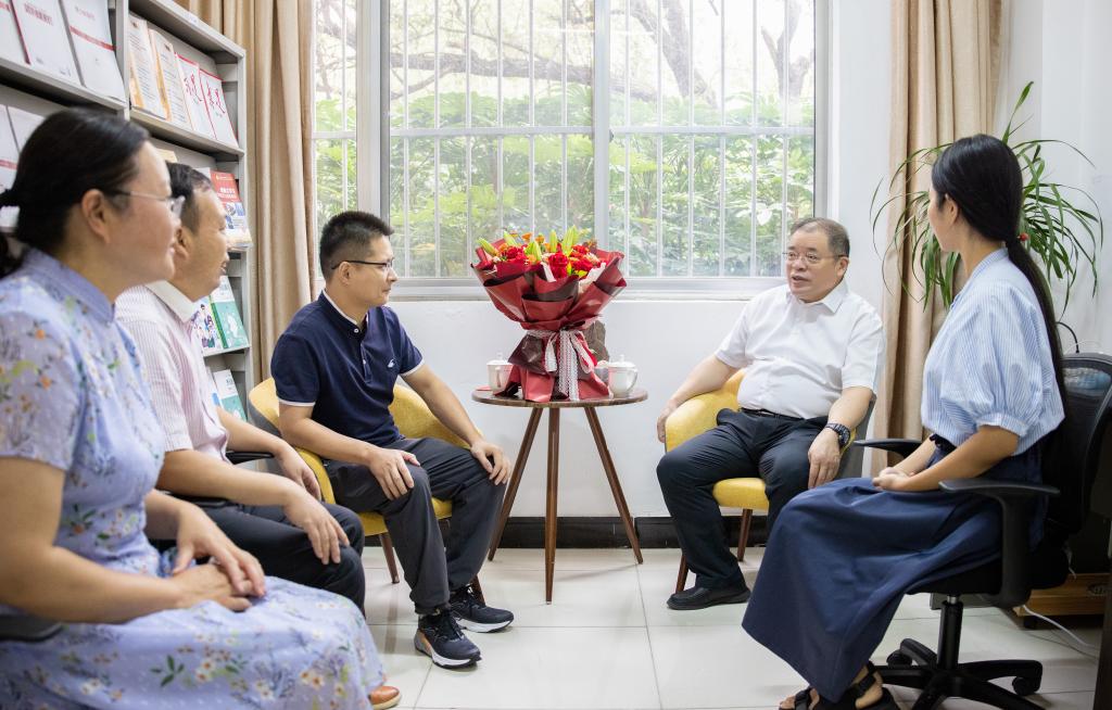 在第38个教师节来临之际,9月8日上午,校领导王自力、宁晓明、史顺良看望慰问了一线教师及离退休教师代表,并向他们及全校教师致以节日的问候和诚挚的祝福。