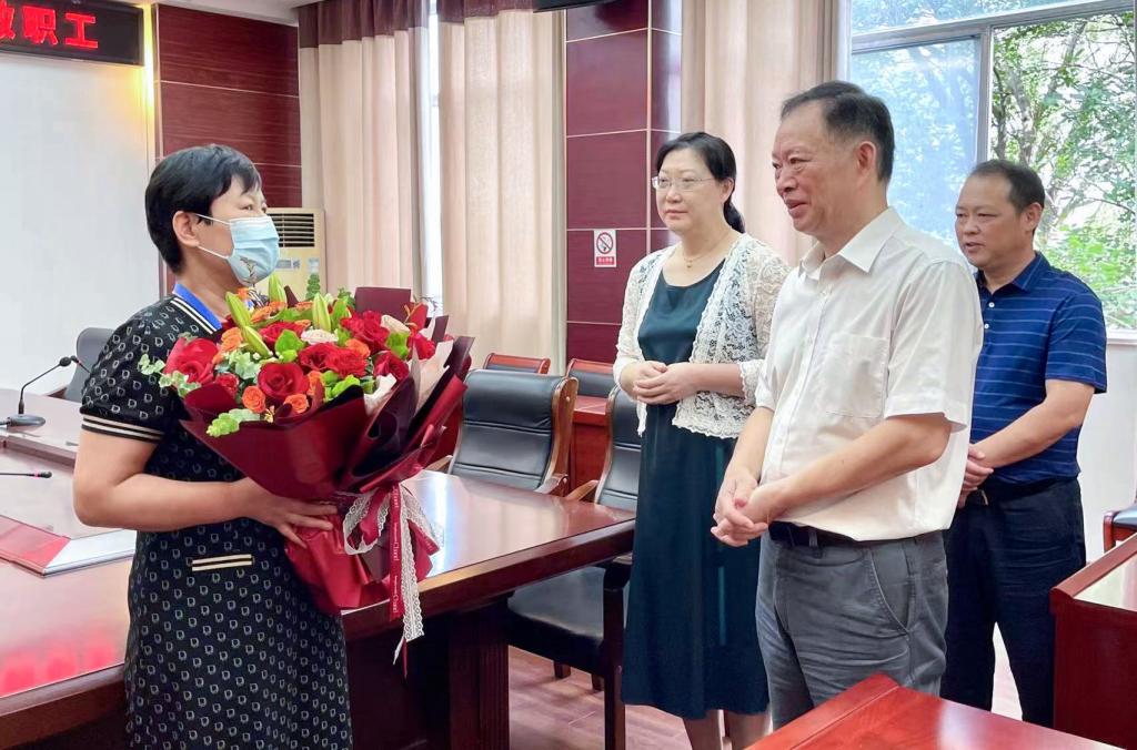 校领导先后到张元、马奔、董井泉、黄保坤、柏秀珍、李顺秀六位教师的办公室或家中,为他们送上鲜花和慰问金。