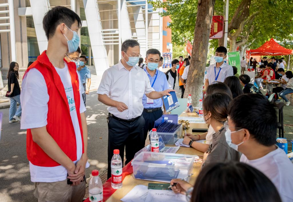 9月11日上午,校长宁晓明、副校长朱国军分别到苍梧校区、通灌校区走访了解新生报到情况,看望慰问新生及迎新工作人员、志愿者。