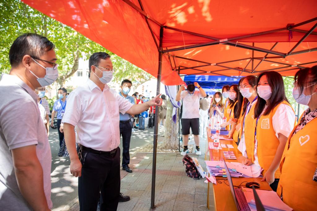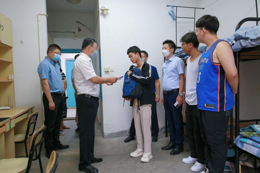 根据学校迎接2022级新生相关工作安排,在各校区门口,新生报到需要通过查验身份、测温、出示健康码和通行码、核酸检测等流程进入校园。宁晓明仔细查看了迎新报到现场工作布置和疫情防控措施落实情况,每到一处,都详细了解新生报到情况。