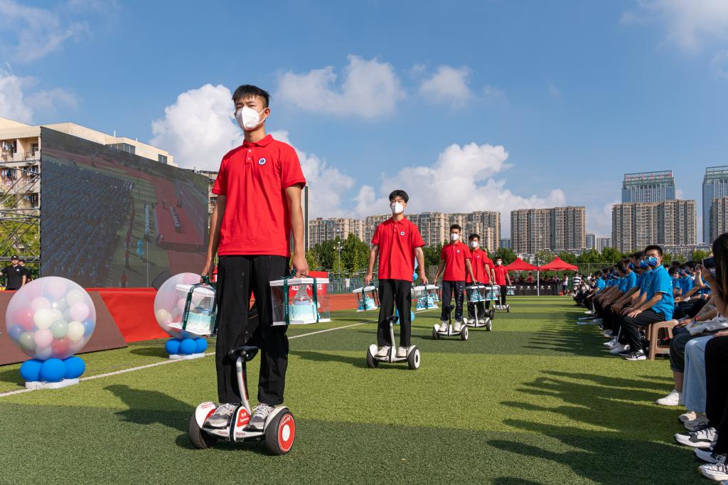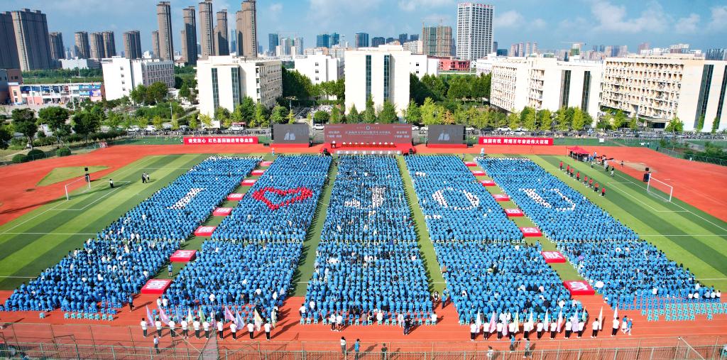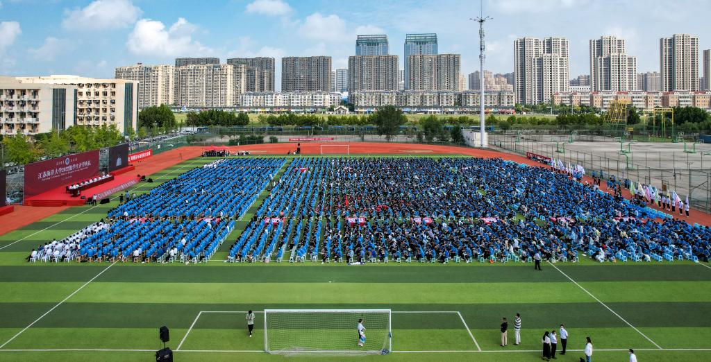 9月17日上午,我校2022级新生开学典礼在苍梧校区西操场隆重举行,学校通过直播实现线上线下全程互动。校领导宁晓明、史顺良、舒小平、许兴友、李梅英、严云洋、朱国军,校党委常委、组织部部长纪延光,校党委常委、宣传部部长杨雪英出席会议。典礼由副校长朱国军主持。