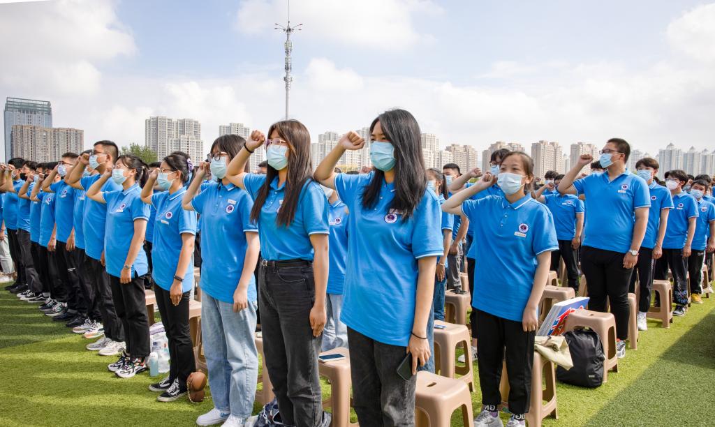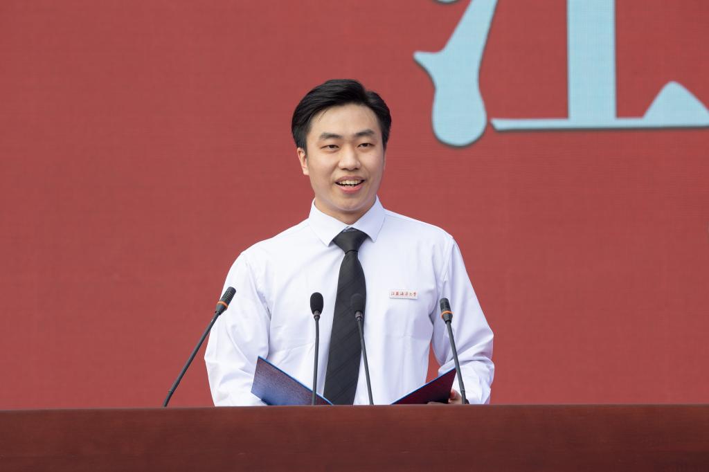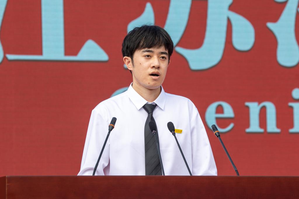 校学生会执行主席邓振国同学带领2022级新生进行入学宣誓