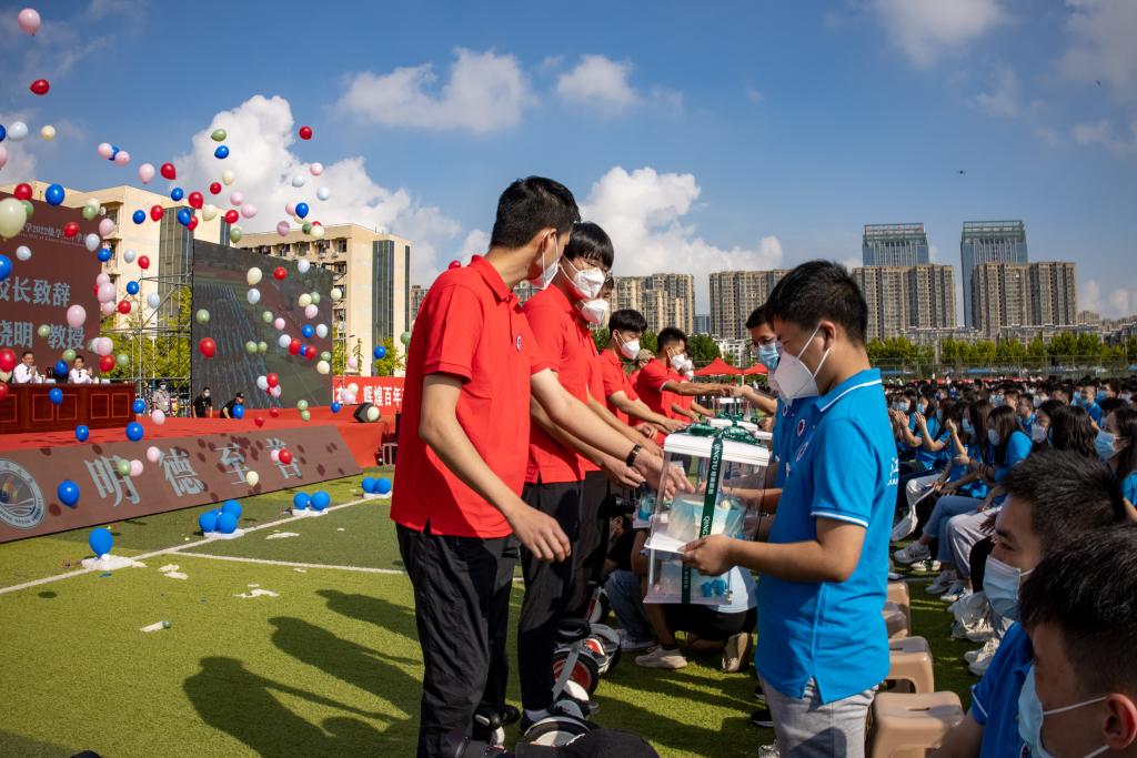 校长宁晓明为本科生、研究生新生代表授予、佩戴校徽
