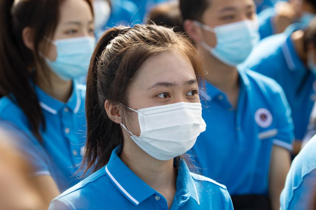 校长宁晓明为本科生、研究生新生代表授予、佩戴校徽,所有新生起立共同佩戴校徽。这枚校徽,不仅象征着6529名新同学正式成为海大的一员,也意味着海大学子从此刻起,要满怀蔚蓝信仰,勇担时代使命,开启追逐梦想、奋斗青春的新征程。