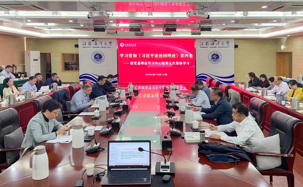 10月13日下午,我校党委理论学习中心组在会议中心东海厅举行本年度第五次集中学习,专题学习《习近平谈治国理政》第四卷。校党委书记王自力主持会议并讲话,强调要把学习贯彻《习近平谈治国理政》第四卷作为重大政治任务,深刻领悟“两个确立”的决定性意义,增强“四个意识”、坚定“四个自信”、做到“两个维护”,坚定不移用党的理论创新成果统一思想、统一意志、统一行动,切实把学习成果转化为奋进新征程、建功新时代的工作举措和实际成效。全体校领导、“两委”委员、党群部门负责人、二级党组织书记参加学习。