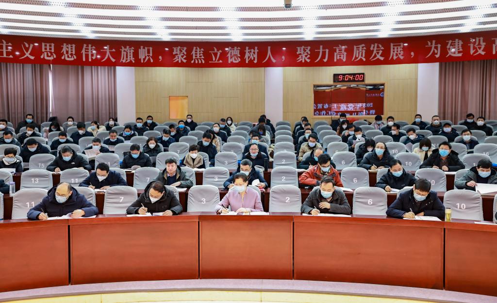 校长宁晓明作题为“把握机遇,踔厉奋发,开启学校创建博士学位授予单位攻坚年新篇章”的报告。报告简要回顾了过去一年学校主要工作,以2022年度校内综合考核成绩分析为切入点,总结了学校内涵建设取得的成绩和存在的短板弱项,从年度重点工作、内涵建设、内部治理等几个方面全面部署了党政重点工作。