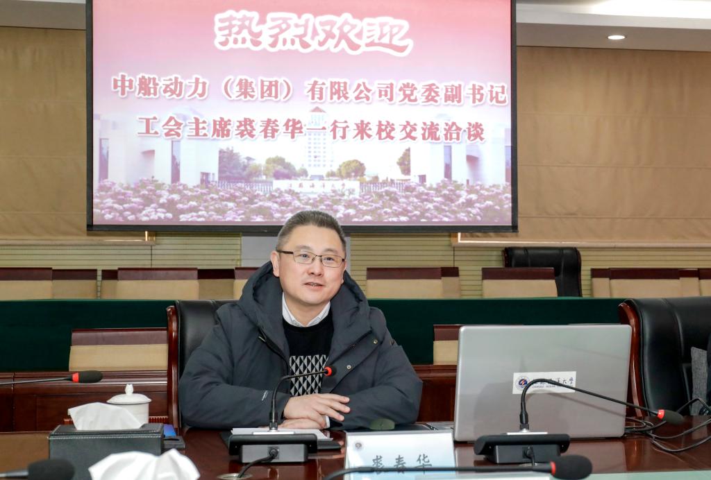裘春华简要介绍了中船动力(集团)有限公司在组织架构、企业愿景、发展方略的基本情况,重点介绍了该公司在构建协同创新生态、打造高水平科研平台、聚焦核心技术攻关和产品研制、推动数字化转型发展等方面取得的成果和进展。裘春华表示,中船动力(集团)立足新发展阶段,通过技术创新为加速建设海洋强国提供支撑。人才是实现创新发展的核心竞争力。高校为企业发展注入人才动力和智力支持,双方通过合作可以实现资源共享、核心技术协同攻关、成果转化应用,积极构建新发展格局。