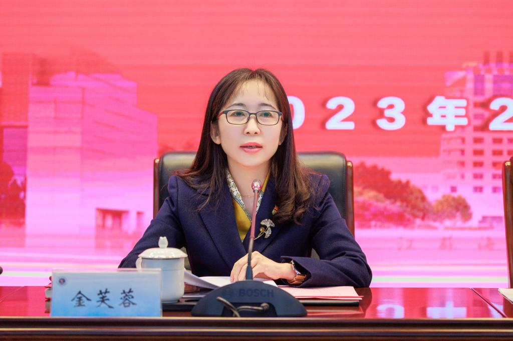 校党委常委、副校长金芙蓉作题为“培根铸魂守初心立德树人担使命以高质量党建引领学校事业高质量发展”的工作报告。她从“提高政治站位,认真组织落实重大学习宣传和整改任务”“突出固本强基,不断提升党的建设工作质量”“强化知行合一,持续提升思想政治工作成效”“强化责任担当,深入推进党风廉政建设纵深发展”“狠抓安全稳定,全力构建和谐文明校园”“注重实践导向,加强党建与思政教育理论研究”等六个方面,全面总结了两年来学校党的建设和思想政治工作取得的成绩以及党建与思想政治教育研究会的工作。