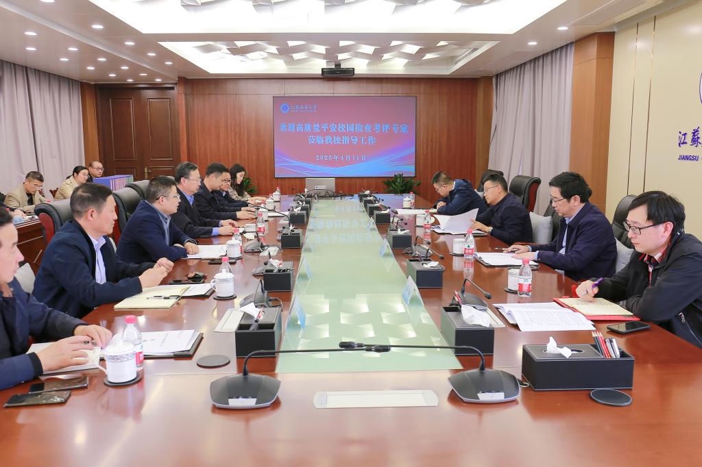 4月11日下午,江苏省高质量平安校园检查组来我校进行考评。由省教育厅安稳处处长冷法尔带队。学校在行政楼五楼会议室召开汇报会,党委副书记、校长宁晓明出席会议,党委常委、副校长朱国军主持会议。市相关部门领导陪同考评。