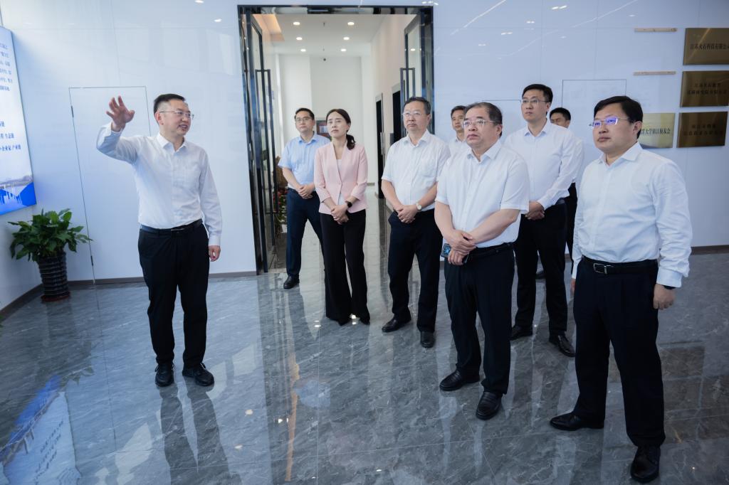 仪式前,与会领导现场参观了数智低碳院和技术转移中心,并听取了相关建设目标、体系定位、体系内涵以及技术应用方面情况介绍。