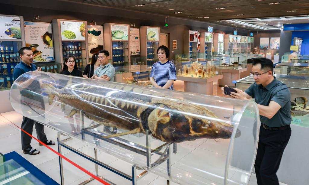 6月7日,金芙蓉陪同刘峰、全国十佳科普使者“贝壳先生” 李宗剑、辽宁舰首位女操舵兵徐玲等一行先后参观了海洋工程技术研究中心、海洋馆、水族缸造景大赛成果展和海洋经济与文化研究中心。