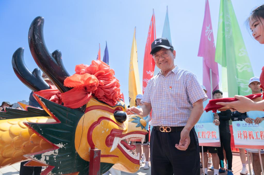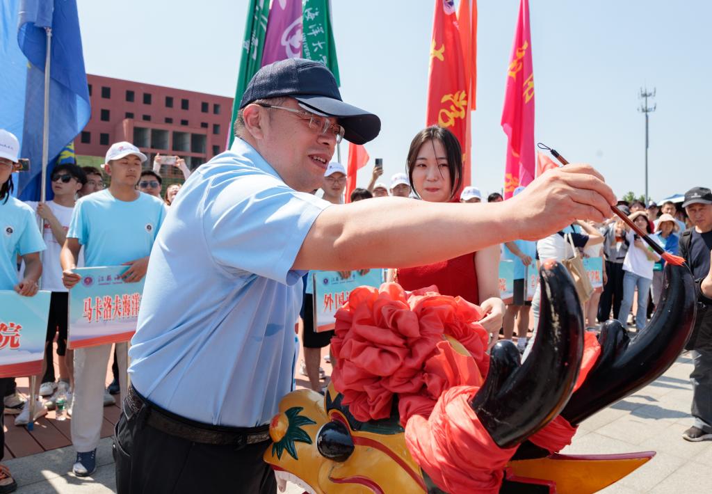 校党委书记王自力和江苏东浦管桩有限公司党委书记谭学立为龙舟点睛