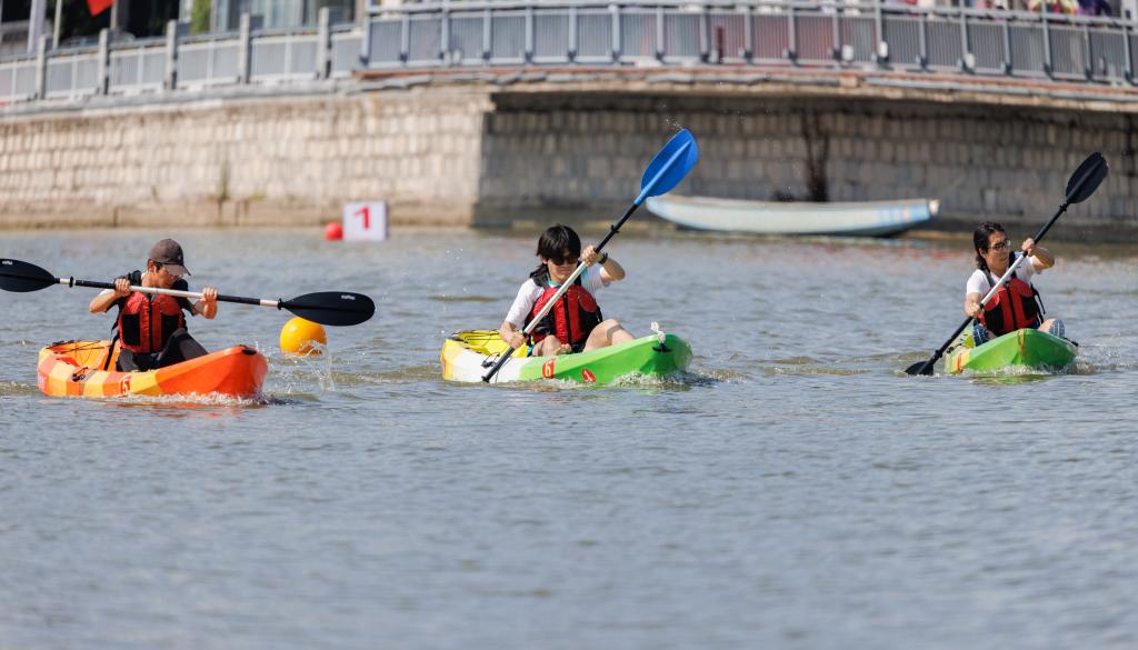 本届水上运动会共有龙舟、单人艇、双人艇三个项目,学生组和教工组两个组别共15支参赛队伍,近300名运动员参加比赛。