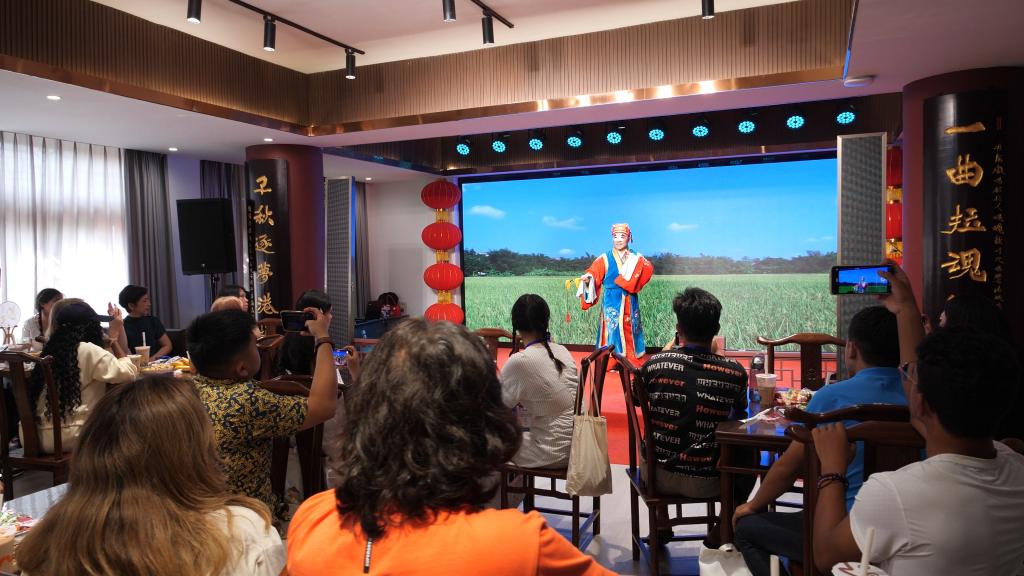 演出期间,连云港市演艺集团青年演职人员还现场教授外国师生穿戏服及简单戏曲招式,带领外国师生们亲身体验中国传统戏曲文化的独特魅力。