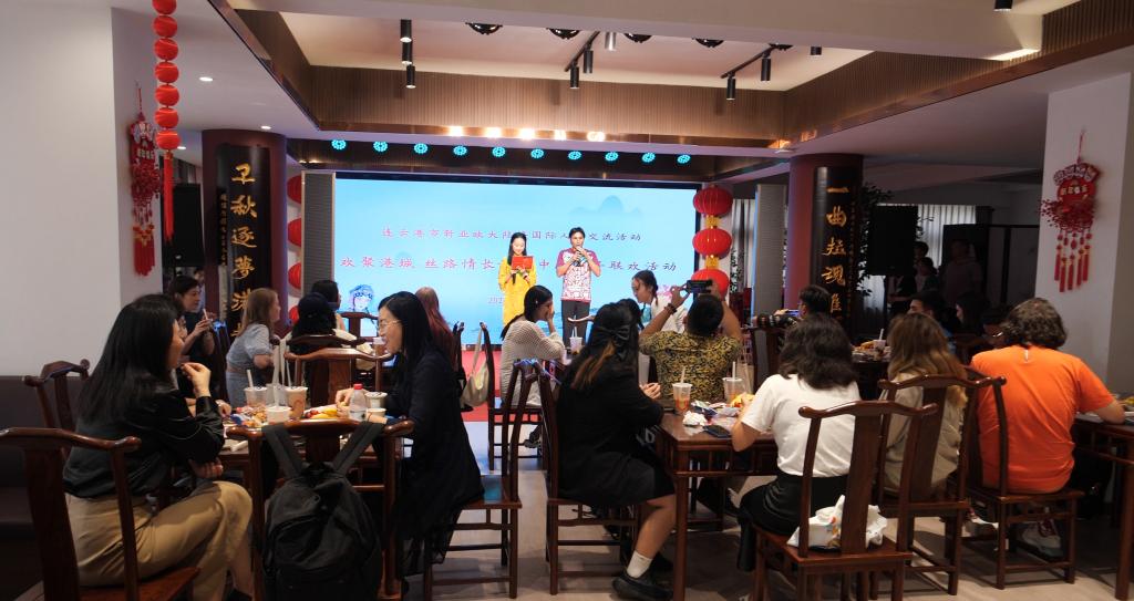 7月31日,我校联合连云港市演艺集团在盐河巷“连云港腔调”小剧场共同举办了欢聚港城丝路情长——中外青年联欢活动,连云港市文化广电旅游局副局长张文艳、非物质文化遗产处处长王源远、连云港市演艺集团董事长、党总支书记谢春芳、我校国际交流与合作处全体人员、连云港市新亚欧大陆桥国际人才交流活动学员及带队教师参加活动。