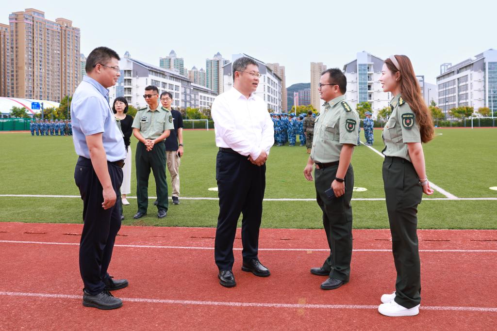 校领导走进训练场地检查训练情况,深入连队了解新生军训感受,关心同学们的身体状况以及到校后学习、生活情况,并勉励学生用好军训这节开学第一课,把军队勇敢顽强、不怕牺牲、不怕疲劳和连续战斗的优良作风用到学习和生活中,养成良好的生活习惯,度过充实和收获满满的大学生活。