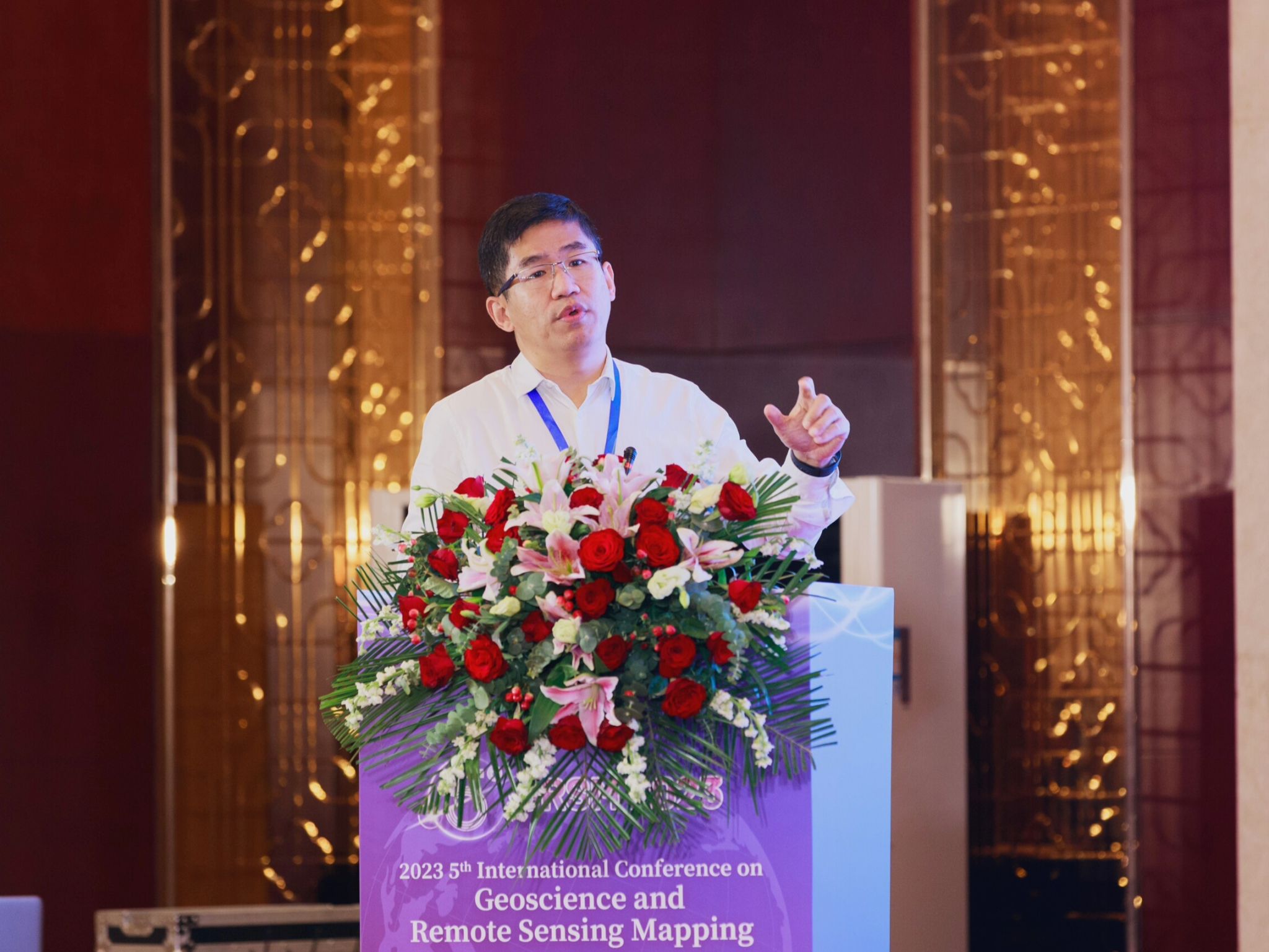 校长宁晓明在开幕式上致辞,首先代表江苏海洋大学向与会的专家学者和来宾表示热烈的欢迎。简要介绍了学校的办学历史、发展历程以及我校海洋、测绘、遥感等学科建设成就。宁晓明指出:学校将充分利用好这次学术会议,加强与兄弟高校、科研院所和业界企业的联系,深化与各位专家学者和业界精英的交流,着力提升科技创新和社会服务能力,为智慧海洋建设、数字中国建设和遥感测绘产业高质量发展作出更大贡献。希望各位领导、海内外嘉宾一如既往地支持江苏海洋大学的发展!