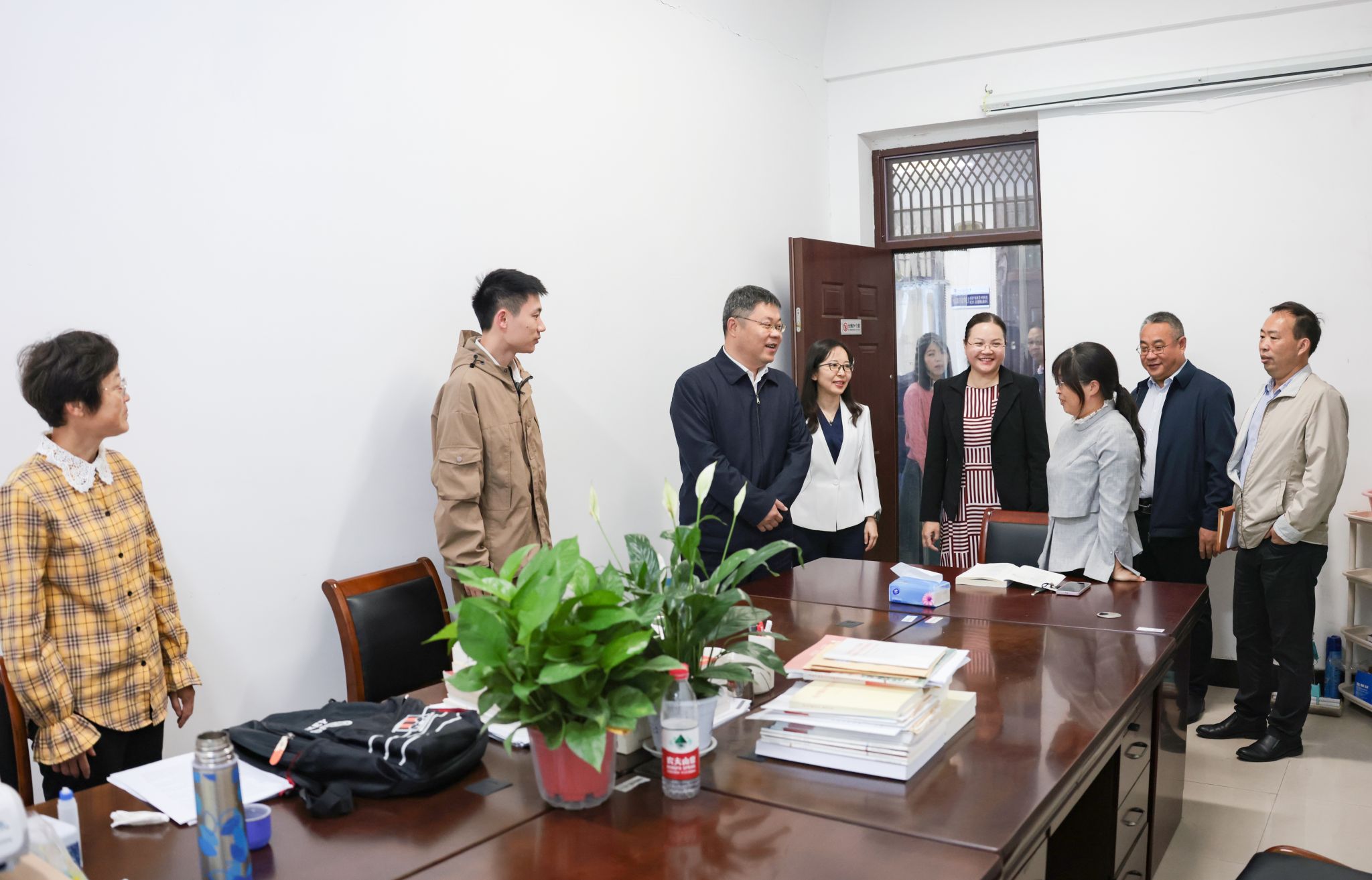 校党委书记许峰、副校长金芙蓉看望正在集体备课的思政课教师